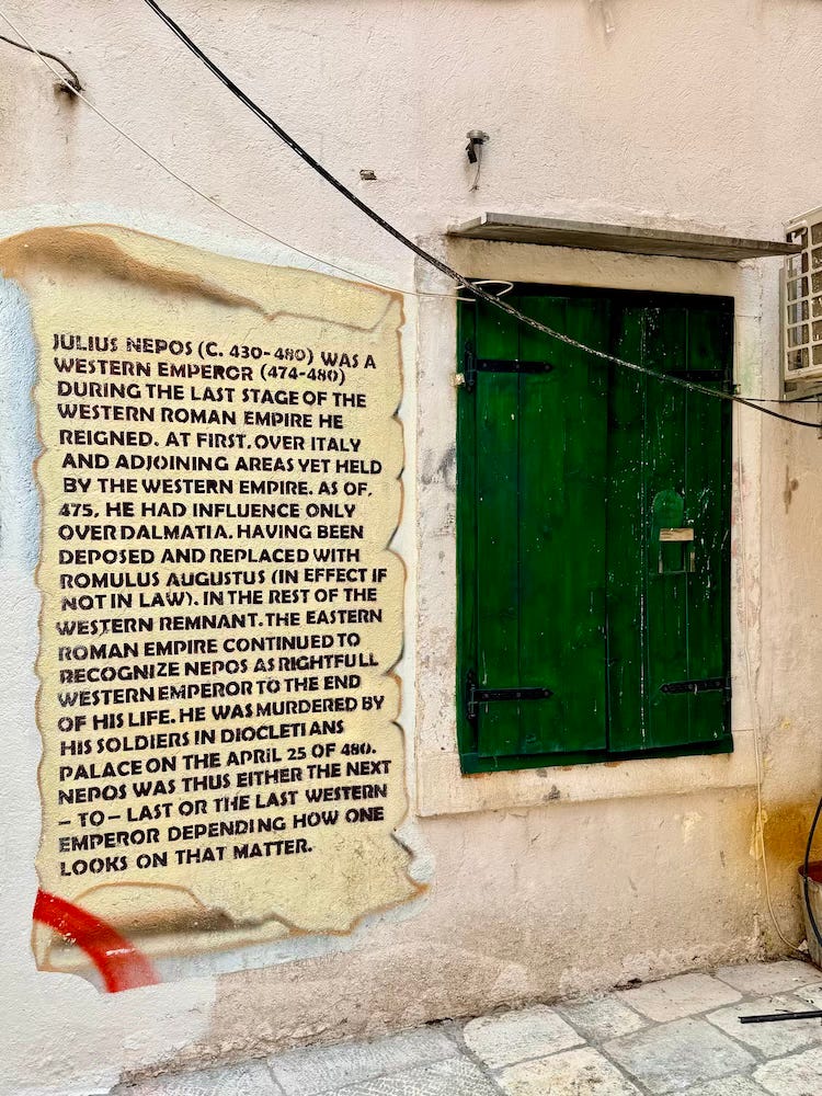 The old town is very beautiful. Reminiscent of Venice without the water and bridges. Lots of little alleyways and bistros tucked into corners. This is the main event and where you will find all the big spenders from the liners on walking tours. I don’t mind a walking tour as I like to sneak a bit of free info where I can, but in the height of summer when they are all over the place led by insufferable ex -teachers wielding giant pom-poms on sticks, I get agitated. Thankfully, it wasn’t so bad and I had enough room to witness Dalmatian singers harking in Diocletian’s Palace.